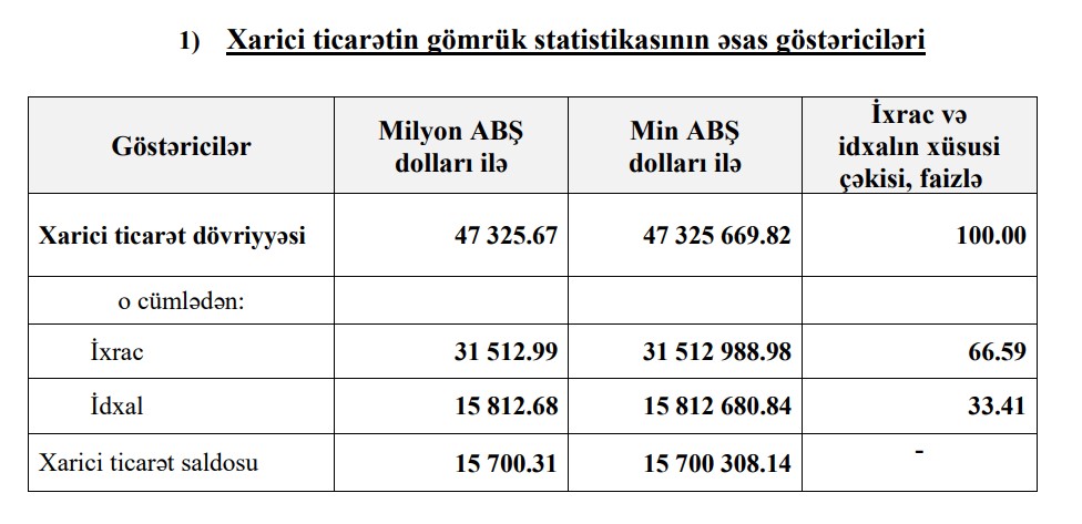 Marja.az bu barədə Dövlət Gömrük Komitəsinin aylıq statistikasına istinadən xəbər verir.