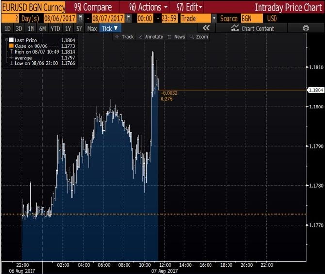 Avro/dollar məzənnəsi, 0.4%-ə qədər yüksələrək bu gün 1.1814 səviyyəsini görüb.