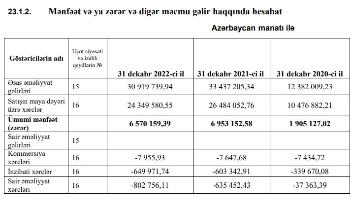 Qeyd edilib ki, 2023 cü ilin ilk 6 ayında isə "Konstromat” şirkəti 122 min 215 ton, satış dəyəri ilə 20 milyon 320 min 812 manatlıq sement məhsulu satmış və 2023 cü il ilk 6 ayı ərzində 2 milyon 164 min 237 manat xalis mənfəət qazanmışdır.