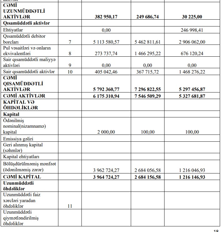 "Konstromat” ASC-nin cəmi uzunmüddətli aktivləri 2022-ci ilinin sonuna 382 min 950 manat, qısamüddətli aktivlər isə 5 milyon 792 min 361 manat təşkil edib. Həmçinin Şirkətin öhdəlikləri 2022-ci ilin sonuna 2 milyon 210 min 587 manata çatmışdır.