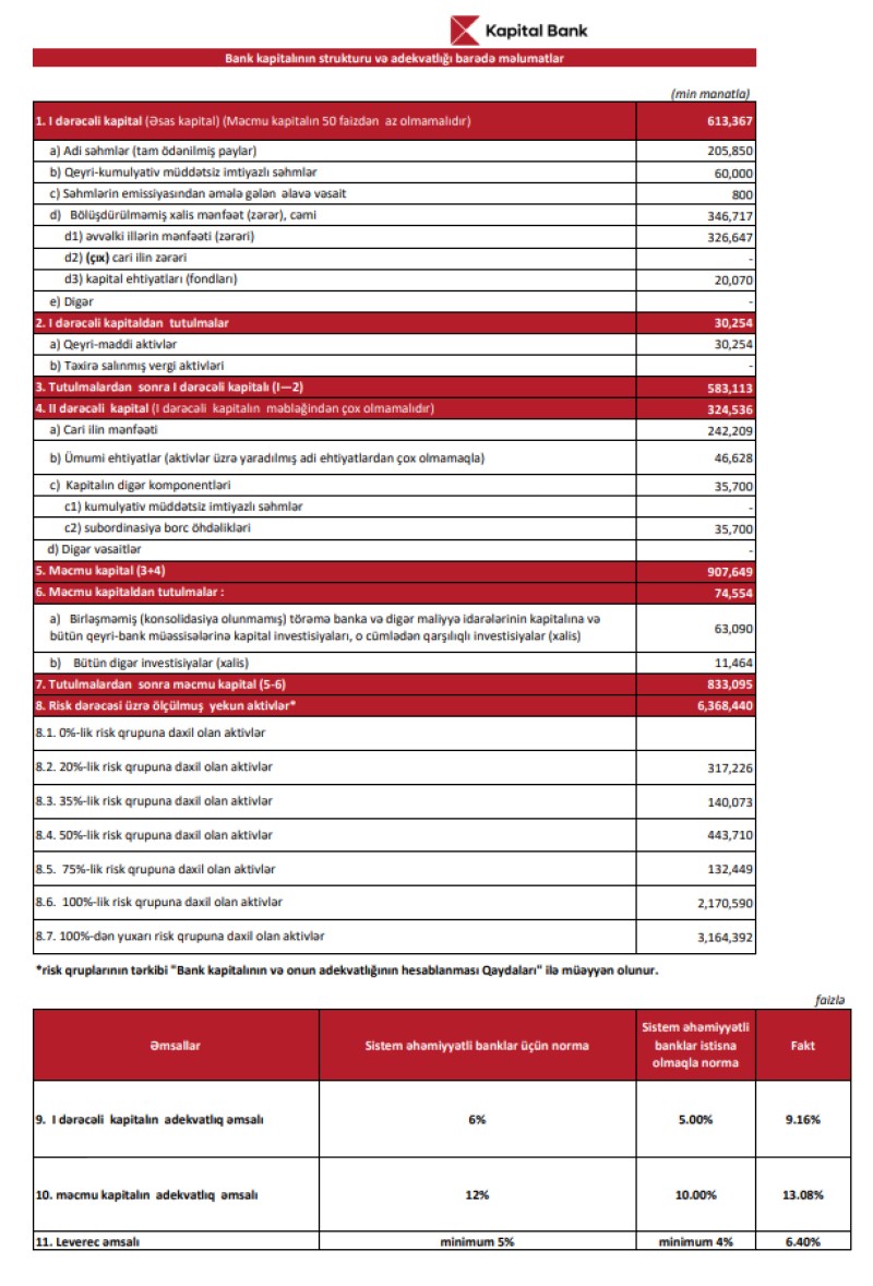 31 dekabr 2023-cü il tarixində "Kapita Bank" ASC 833 milyon 95 min manat məcmu kapitala malik olub.
