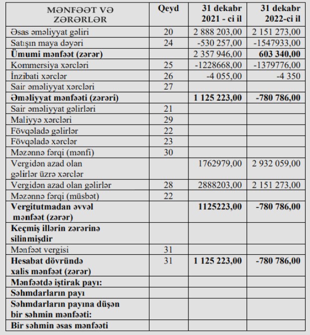 Marja.az xəbər verir ki, 2021-ci ildə "BQ Aqro" QSC-nin satışdan gəlirləri 2 milyon 888 min manat ikən, 2022-ci ildə 2 milyon 151 min manata düşüb (737 min manat və ya 25,5% artıb ). Satışın maya dəyəri isə 1 milyon 17 min manat və ya 2,9 dəfə artaraq 1 milyon 548 min manat təşkil edib (2021-ci ildə 530 min manat). Həmçinin, 2022-ci ildə Şirkətin kommersiya xərcləri də artıb. Gəlirin azalması və xərclərin artması ilə Şirkətin zərər etməsi qaçılmaz olub.