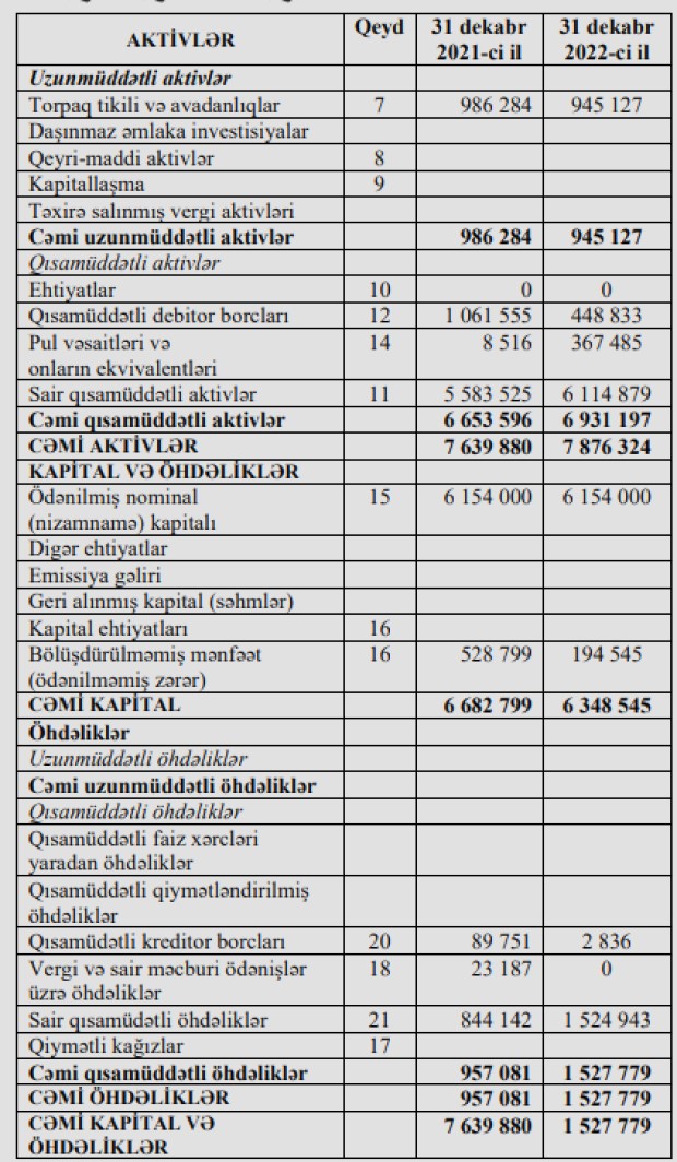 Abşeron rayonu, Məmmədli qəsəbəsindəki istixana təsərrüfatında pomidor və digər tərəvəzlərin yetişdirilməsi və ixracını həyata keçirən "BQ Aqro" QSC 2022-ci ili 781 min manat xalis zərər ilə başa vurub. Şirkət 2021-ci ili 1 milyon 125 min manat xalis mənfəət ilə bağlamışdı.