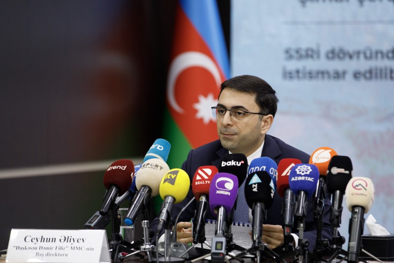 Daha sonra “Daşkəsən Dəmir Filiz” MMC-nin baş direktoru Ceyhun Əliyev çıxış edərək, “Daşkəsən” dəmir filizi yataqlarının istismarına hazırlıq, dəmir istehsalı zəncirinin yaradılması istiqamətində həyata keçirilən işlərdən danışıb. Qeyd olunub ki, “Daşkəsən” dəmir filizi yataqlarında filizli süxurların tərkibindəki dəmirin zənginlik dərəcəsinin nisbətən aşağı olması (ortalama 40%) bu filizlərin zənginləşdirilərək, minimum 67%-ə çatdırılmasını zəruri edir. Bu məqsədlə istehsal zəncirinin ilkin mərhələsi olaraq 67% dəmir tərkibli konsentrat istehsalı məqsədilə Zənginləşdirmə zavodunun inşası nəzərdə tutulub. Növbəti mərhələdə zənginləşdirilmiş konsentratdan xammal qismində mexaniki və kimyəvi uyğunluğun təmin edilməsi üçün aralıq məhsul olan 67% dəmir tərkibli pellet istehsalı infrastrukturu – Pellet zavodu qurulacaq. Daha sonra aralıq məhsul olan pellet 95% dəmir tərkibli HBI məhsulunun istehsalı üçün HBI zavoduna yönəldiləcək.