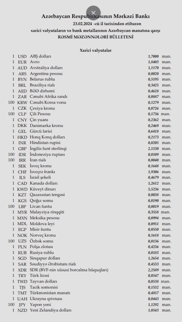 Rəsmi məzənnələr açıqlandı
