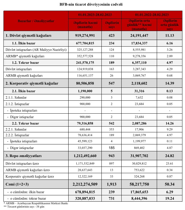 2023-cü ilin ilk 2 ayında Maliyyə Nazirliyi dövlət istiqrazlarının yerləşdirilməsi yolu ilə 325 milyon 127 min manat cəlb etmişdi.