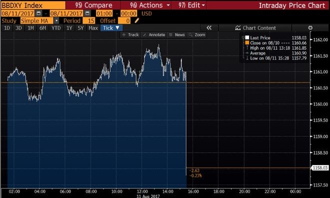 Bloomberg Dollar Spot İndeksi 16:31-də 0.23 faiz düşüb və 1158.03- geriləyib. Avro/dollar məzənnəsi 0,5% qalxaraq 1.1834-ü görüb. Dollar/yen isə yeni aşağı səviyyəsi olan 108.74-ə enməsinin ardından 108.89 səviyyəsinə yaxın əməliyyat olunub.