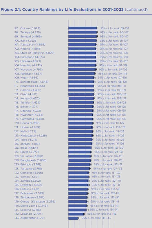 Ən bədbəxt ölkələr Əfqanıstan, Livan, Lesotho, Sierra Leone və Konqo seçilib.