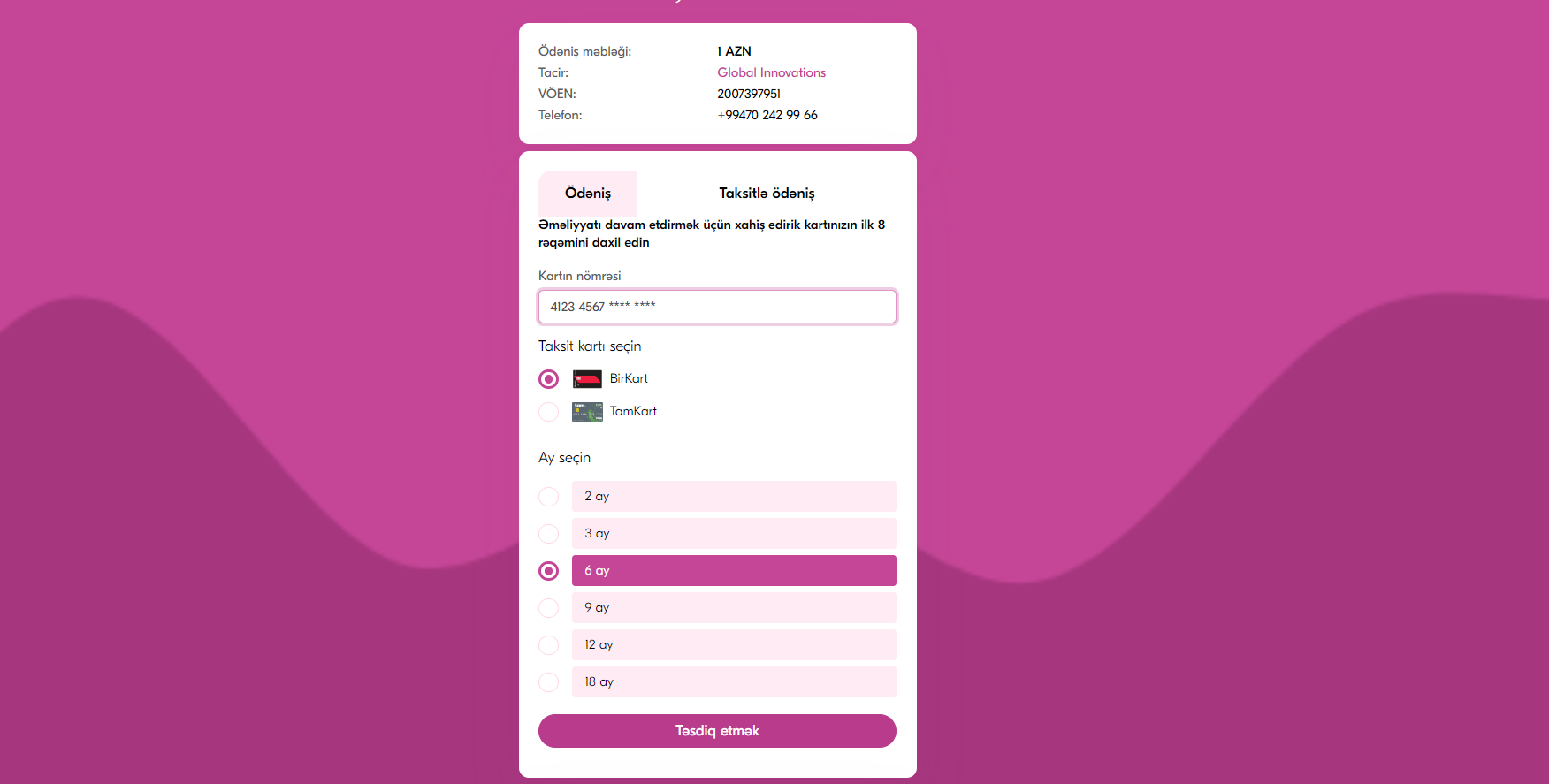 Hazırda ABB Bankın “Tamkart” və Kapital Bankın “Birkart” məhsulları üzrə taksitli ödənişləri qəbul etmək mümkündür. Yaxın zamanda, digər bankların kredit kartları da inteqrasiya olunaraq müştərilərə təqdim olunacaq.