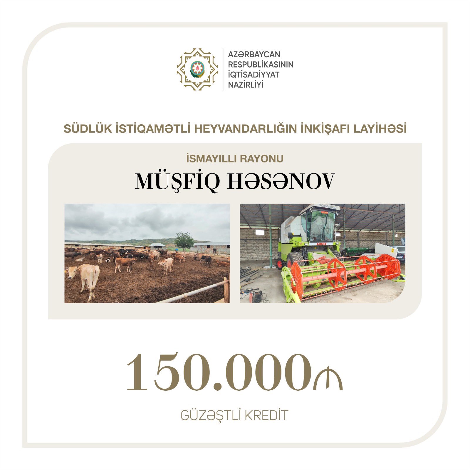 İş adamı südlük heyvandarlıq layihəsi üçün ucuz kredit aldı