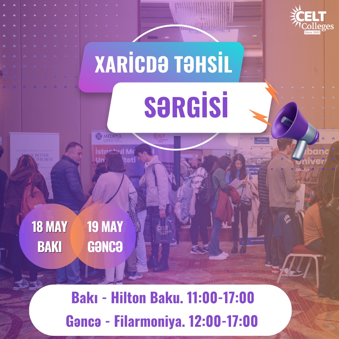 Avropa, ABŞ, BƏƏ və Türkiyənin 50-dən çox ən reytinqli universitetlərinin nümayəndələri Bakıda və GƏncədə olacaqlar18-19 May tarixlərində CELT Xaricdə Təhsil Sərgisi keçiriləcək. Sərgidə Avropa, ABŞ, BƏƏ və Türkiyənin 50-dən çox ən reytinqli universitetlərinin qəbul şöbələrinin rəhbərləri və əməkdaşları iştirak edəcək. Sərgidə həmçinin ADA universiteti də iştirak edəcək.