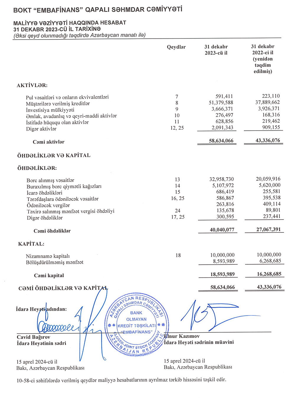 "EmbaFinans" maliyyə vəziyyətini açıqladı
