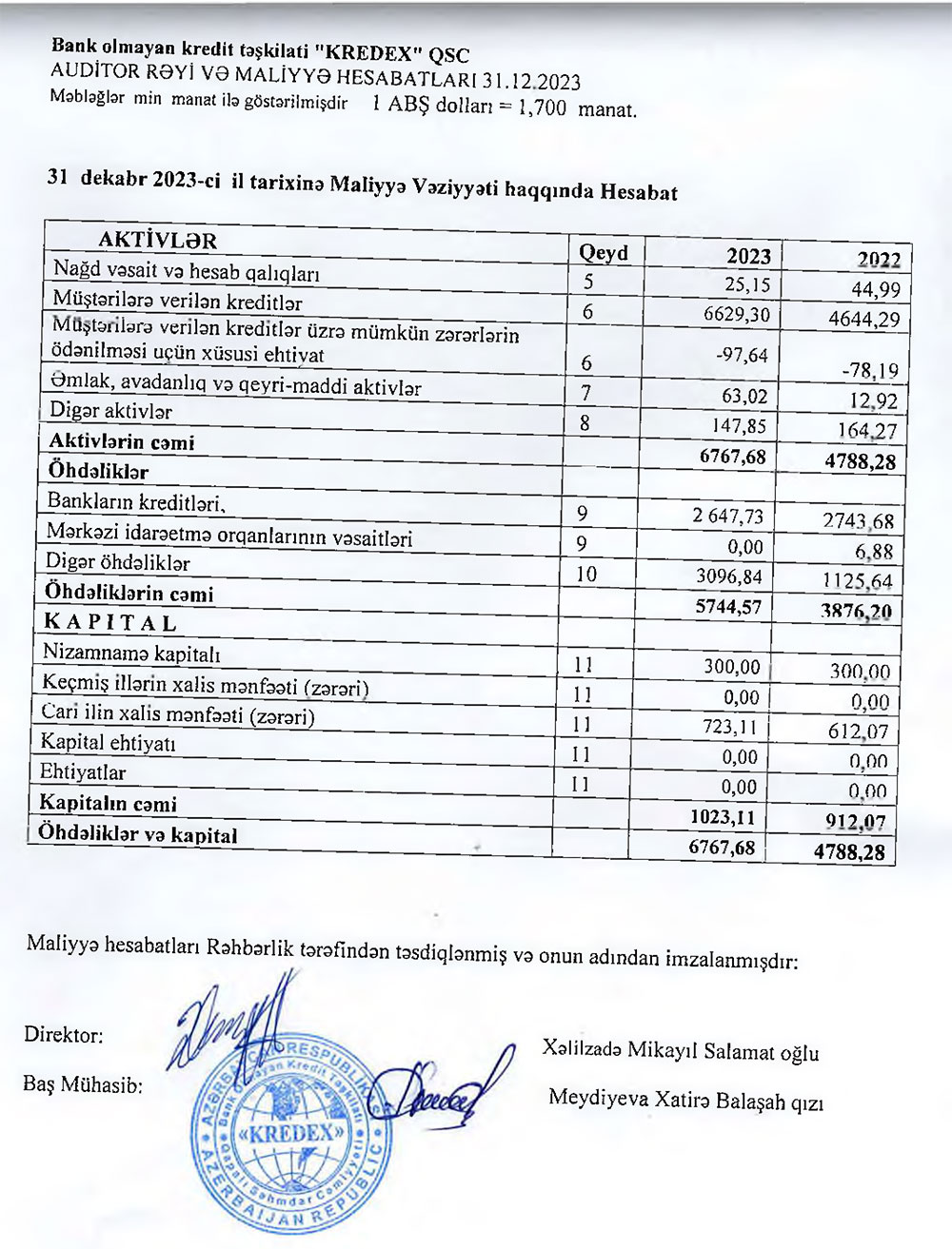 BOKT “Kredex” QSC 2023-cü ili 905,9 min manat mənfəətlə başa vurub.