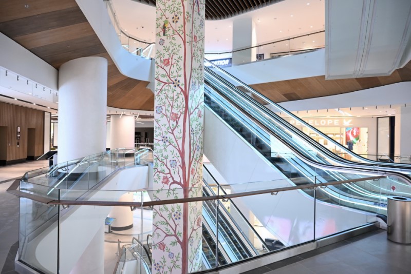 Ticarət mərkəzinin açıq restoranlara qalxan hissəsində çoxmərtəbəli sütunda ölkəmizin mədəni irsinə istinad edən milli elementlərdən ibarət incəsənət nümunəsi həkk edilib. Rəsm əsərində təsvir edilən və sanki orta əsrlərin milli xalçalarından birbaşa sütuna köçmüş nar rəsmləri dünya, həyat və birlik simvoludur. Açan güllər və quşlar ilə zaman dinamikasında bir araya gələn “Həyat Ağacı” isə sürətlə inkişaf edən, ənənələrimizə sadiq qalaraq gələcəyə doğru inamla hərəkət edən, birlik və azadlıq rəmzini özündə təcəssüm etdirən Azərbaycan xalqını ifadə edir.