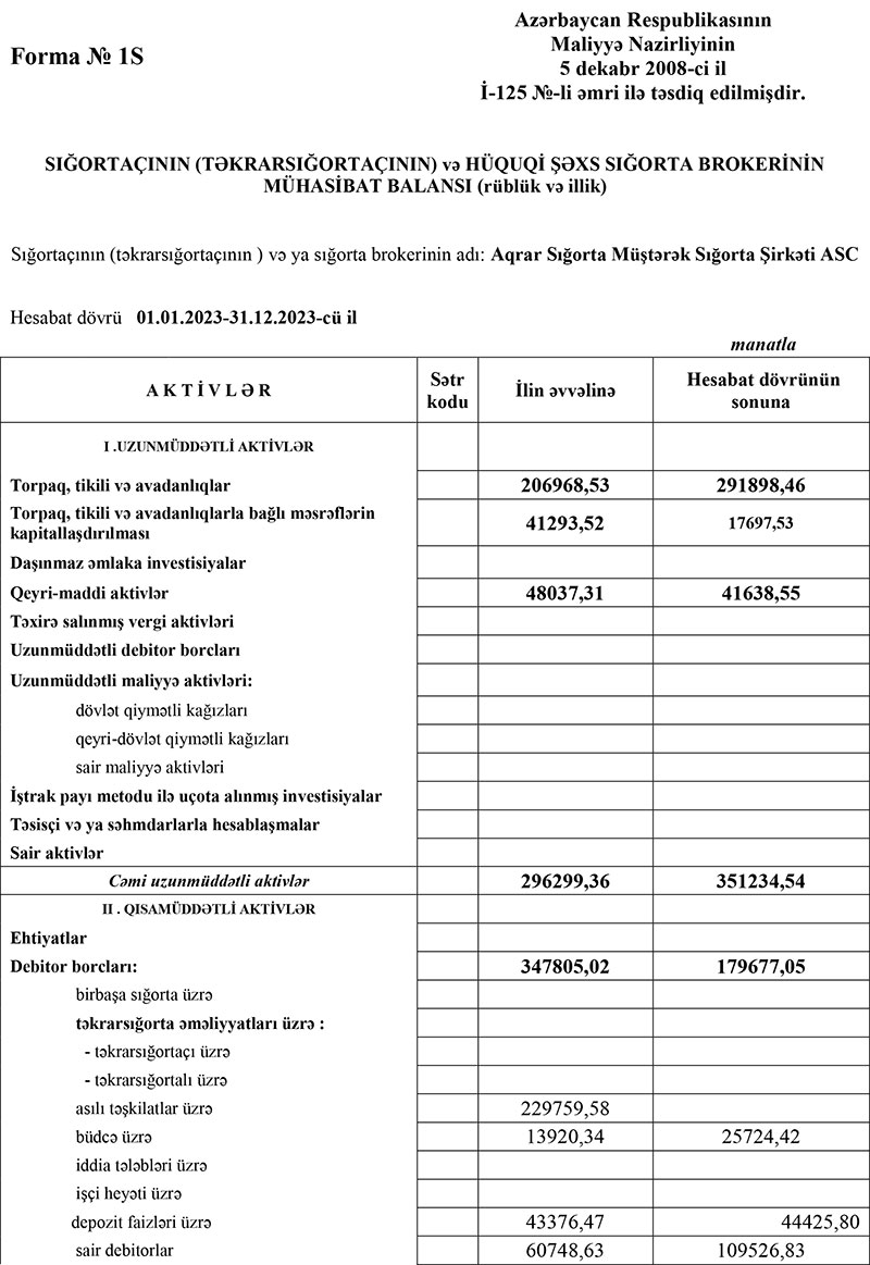 Marja.az xəbər verir ki, "Aqrar Sığorta Müştərək Sığorta Şirkəti"nin cəmi gəlirləri 2022-ci ildə 17 milyon 504 min manat ikən, 2023-cü ildə 11 milyon 381 min manata düşüb. Yığılan sığorta haqları isə 13 milyon 773 min manatdan 16 milyon 873 min manata yüksəlib. Cəmi gəlirlərdə azalma ehtiyata 8 milyon 304 min manat ayırma ilə əlaqədar olub.