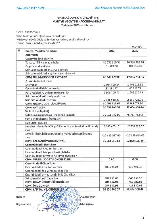 Mərkəz 30 milyon manata yaxın gəlirdən 3,7 milyon manata yaxın xalis mənfəət götürüb.Səhiyyə Nazirliyinin tabeliyində olan Bakı Sağlamlıq Mərkəzi publik hüquqi şəxs 2023-cü ili 3 milyon 683 min manat xalis mənfəət ilə başa vurub. Mərkəz 2022-ci ili 2 milyon 266 min manat xalis mənfəət ilə bağlamışdı. Beləliklə, Bakı Sağlamlıq Mərkəzinin xalis mənfəəti 2023-cü ildə 2022-ci illə müqayisədə 1 milyon 417 min manat və ya 62,5% artıb. Xalis mənfəətin artması Bakı Sağlamlıq Mərkəzinin aldığı dotasiyanın artması ilə əlaqədardır.