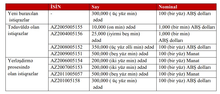 Marja.az xəbər verir ki, faizli, təmin edilməmiş sənədsiz, adlı subordinasiya istiqrazların hər birinin nominal dəyəri 100 ABŞ Dolları, sayı 300 000 ədəddir.