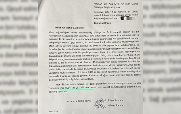 Paralimpiyaçı olması ona haqq qazandırmır. Burada binanı satan adam deyir ki, kvadratmetri 1200 manatdır. İki il əvvəl həmin evi saytda 65 min manata qoymuşdular, indi niyə 250 min olmalıdır? Ərizənin məzmununu göstəriş verərək demişdik ki, 140 min olsun, amma o, 250 min edib. Vətəndaşlıq borcları da yerinə yetirilməlidir. Vətəndaşın tələbi böyükdür, bunu şirkət olaraq qarşılaya bilmərik”.