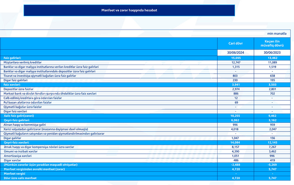 2024-cü ilin ilk 6 ayında (yanvar-iyun) "Bank VTB (Azərbaycan)" ASC-nin kredit portfeli (müştərilərə verilmiş cəmi kreditlət) 26 milyon 493 min manat və ya 14,2% artaraq 213 milyon 613 min manata çatıb. Bank ötən ilin sonunda 187 milyon 120 min manat kredit portfelinə malik idi.