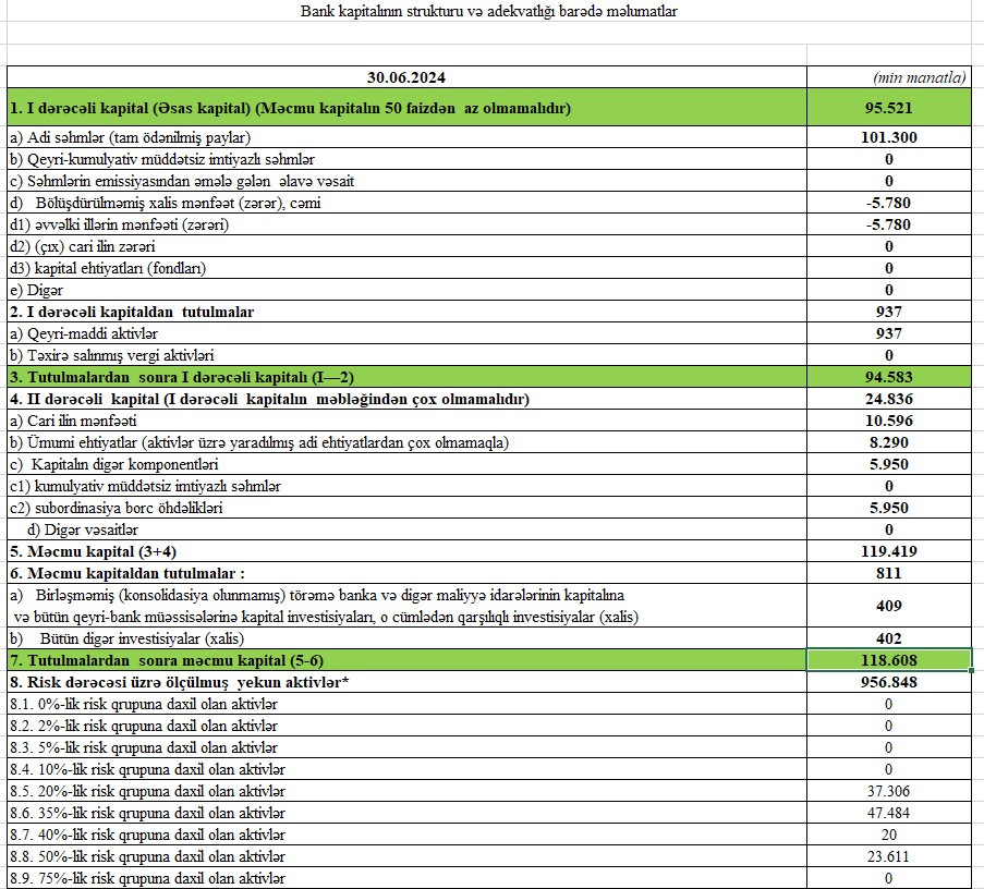 Həmçinin, ilk 6 ayda Bank əməliyyat mənfəətindən 4 milyon 586 min manat mümkün zərərlər üçün yaradılan məqsədli ehtiyatlara ayırıb. 2023-cü ilin eyni dövründə "Rabitəbank" əməliyyat mənfəətindən 506 min manat ehtiyata ayırmışdı.