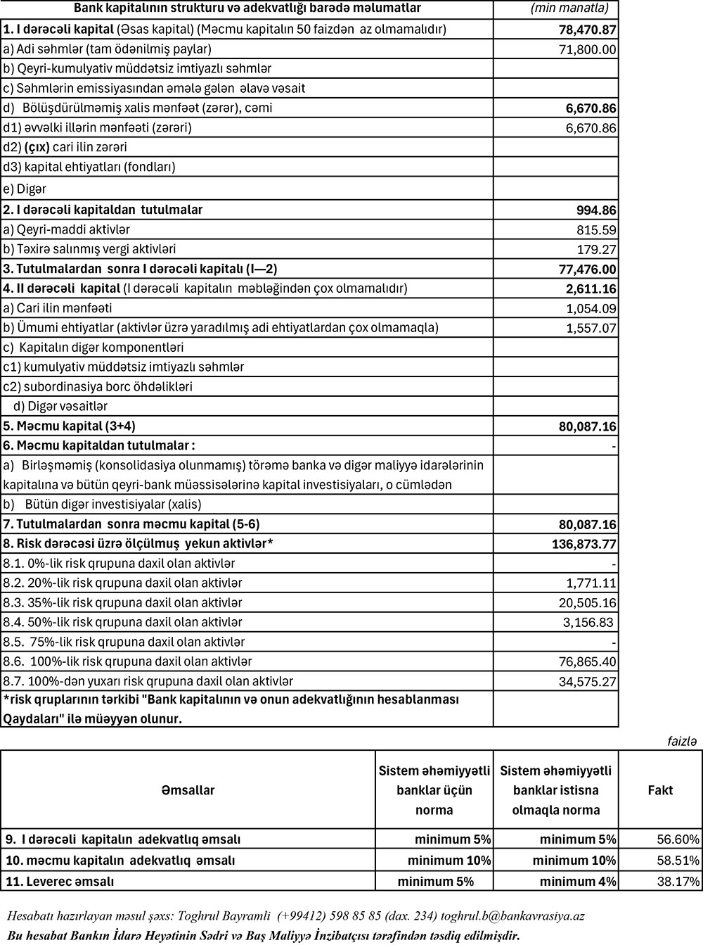 Həmçinin, ilk 6 ayda Bank əməliyyat mənfəətindən 2 milyon 72 min manat mümkün zərərlər üçün yaradılan məqsədli ehtiyata ayırıb. 2023-cü ilin eyni dövründə "Bank Avrasiya" əməliyyat mənfəətindən 1 milyon 505 min manat ehtiyata ayırmışdı.