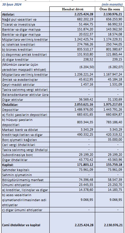 Həmçinin, ilk 6 ayda Bank əməliyyat mənfəətindən 893 min manat mümkün zərərlər üçün yaradılan məqsədli ehtiyata ayırıb. 2023-cü ilin eyni dövründə "Bank Respublika" əməliyyat mənfəətindən 154 min manat ehtiyata ayırmışdı.
