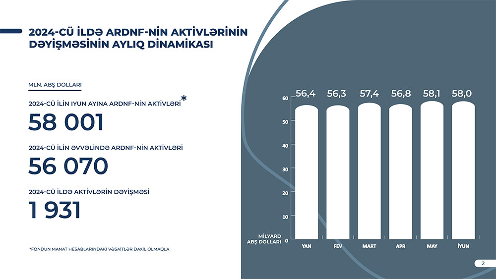 Azərbaycan Respublikası Dövlət Neft Fondu (ARDNF) 2024-cü ilin yanvar-iyun ayları üzrə gəlir və xərclərinə dair məlumatları açıqlayıb.