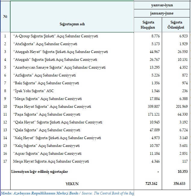 Şirkətlər üzrə sığorta haqları və sığorta ödənişləri - SİYAHI