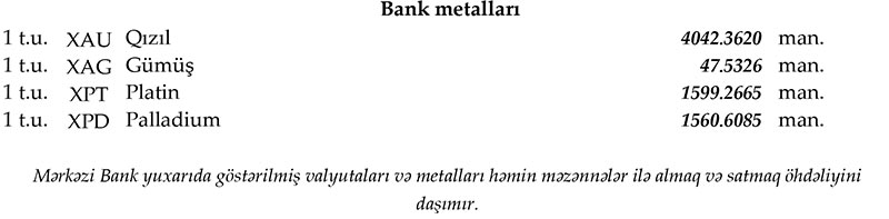 Rəsmi məzənnələr açıqlandı