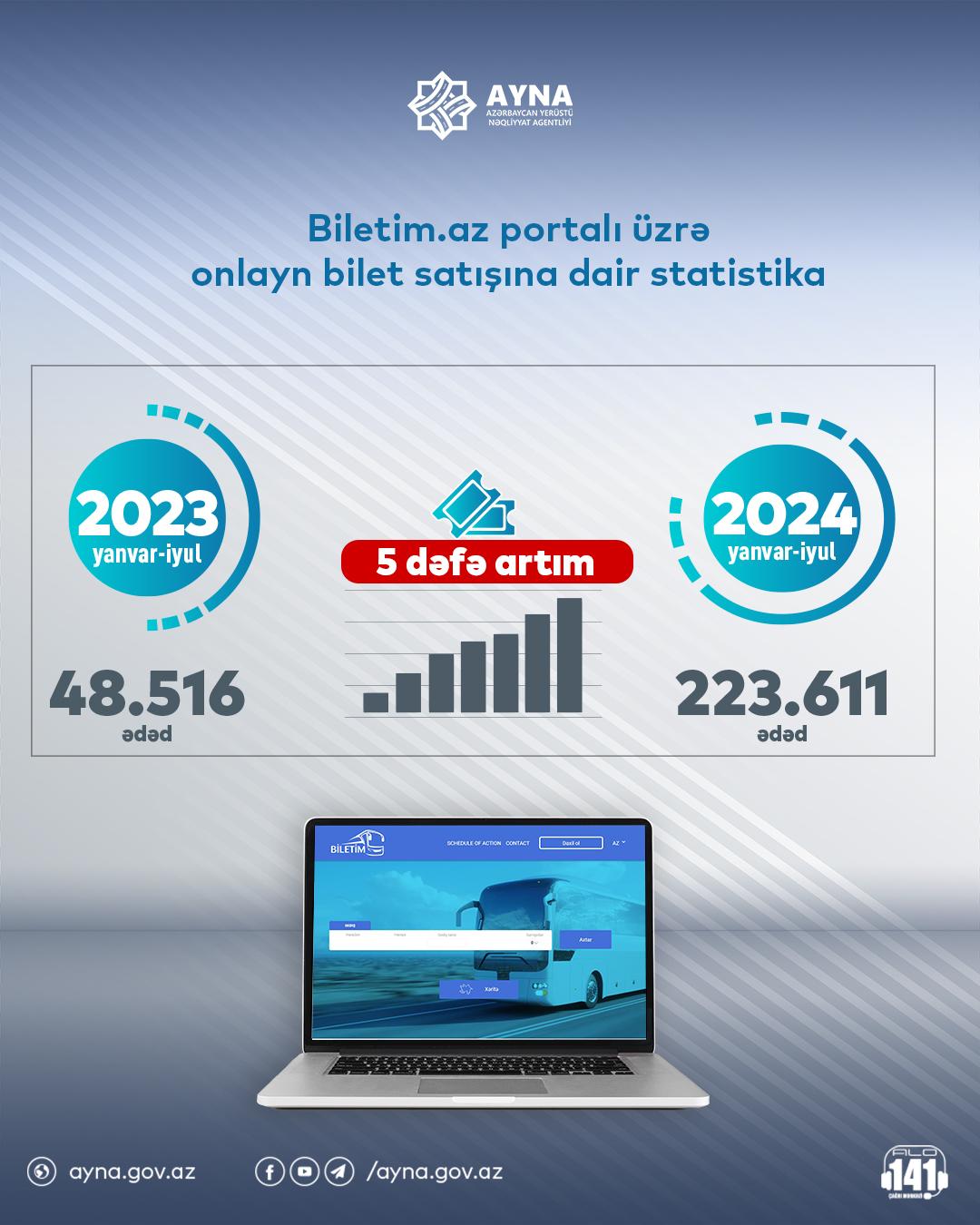 Bu ilin yanvar-iyul aylarında Biletim.az portalı üzərindən 223 661 ədəd bilet alınıb.
