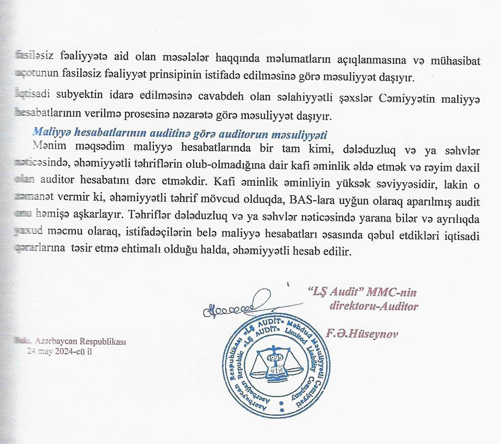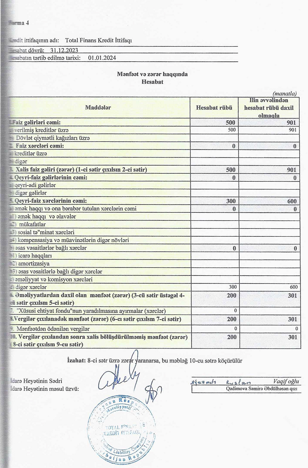"Total Finans Kredit İttifaqı" MMC-nin 31 dekabr 2023-cü il tarixində bitən il üzrə maliyyər hesabatları