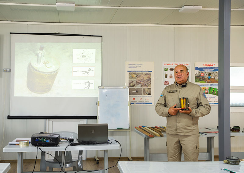 Agentliyin Göygöl Regional Təlim Mərkəzinin təlimatçısı Rəşad Əliyev tərəfindən humanitar minatəmizləmə təlimlərinin əsasları, minatəmizləmə fəaliyyəti üzrə mövcud kadr potensialının inkişafı və yeni kadrların hazırlanması prosesinin icrası haqda məlumat verilib. Həmçinin mövcud mina təhlükəsi barədə məlumatlılığın artırılması məqsədilə Partlayıcı Sursatların Təhlükəsinə dair Maarifləndirmə təlimi keçilib.