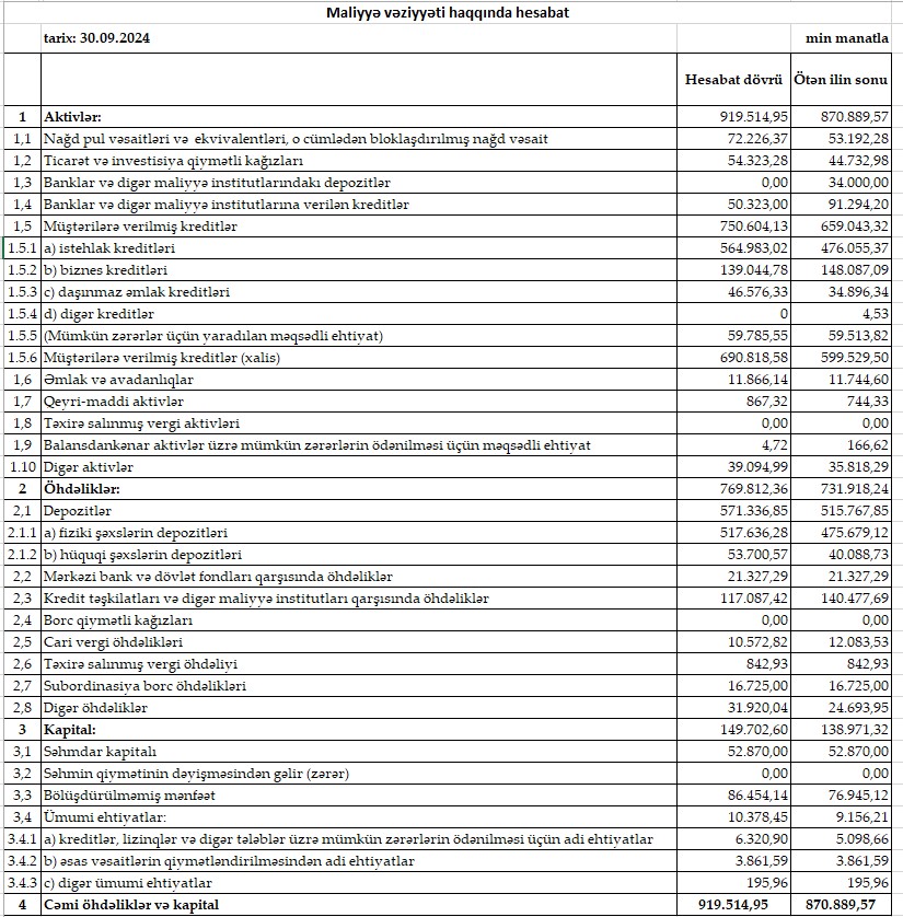 CƏMİ AKTİVLƏRİ 920 MİLYON MANATA YAXINLAŞIB