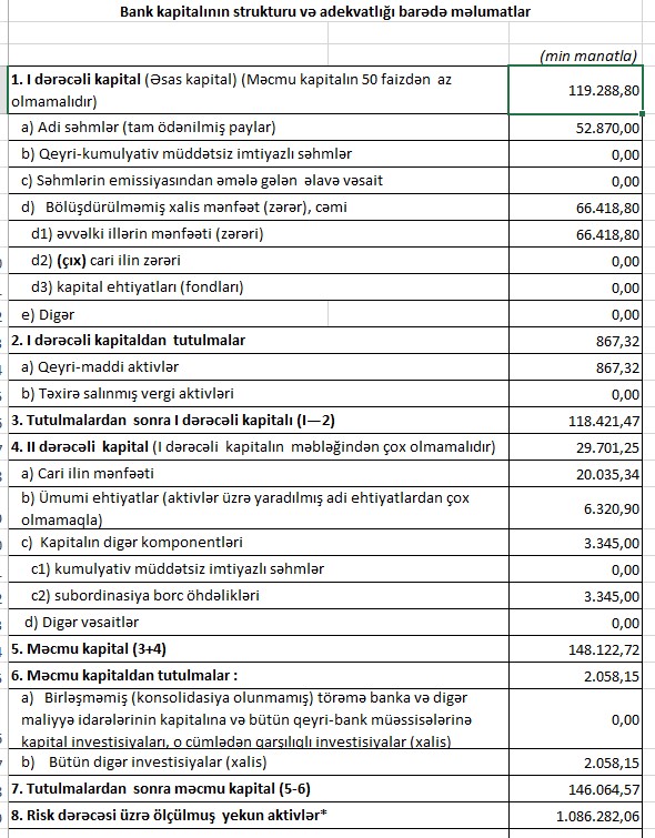 30 Sentyabr 2024-cü il tarixində "Bank of Baku" 146 milyon 64 min manat məcmu kapitala malik olub. Bank 2023-cü ilin sonunda 140 milyon 501 min manat məcmu kapitala malik idi.