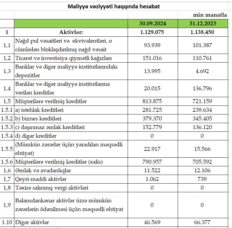 Cari ilin III rübündə Bankın aktivləri 12% artaraq 1 milyard 129 milyon manata çatıb.