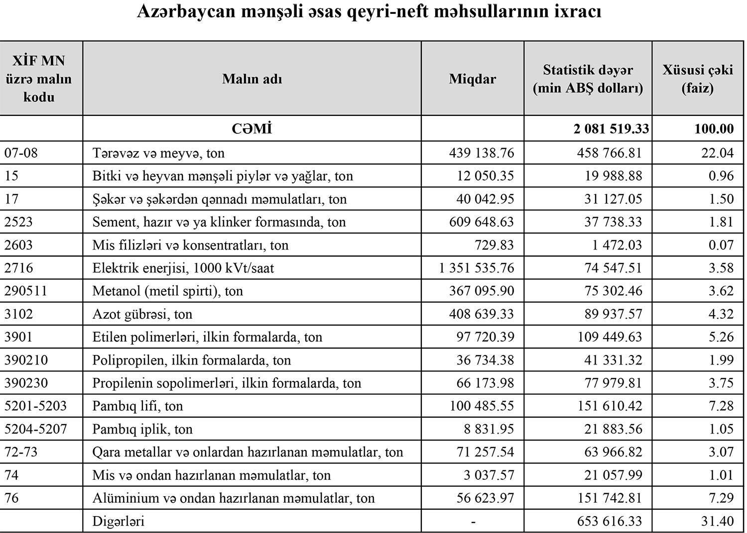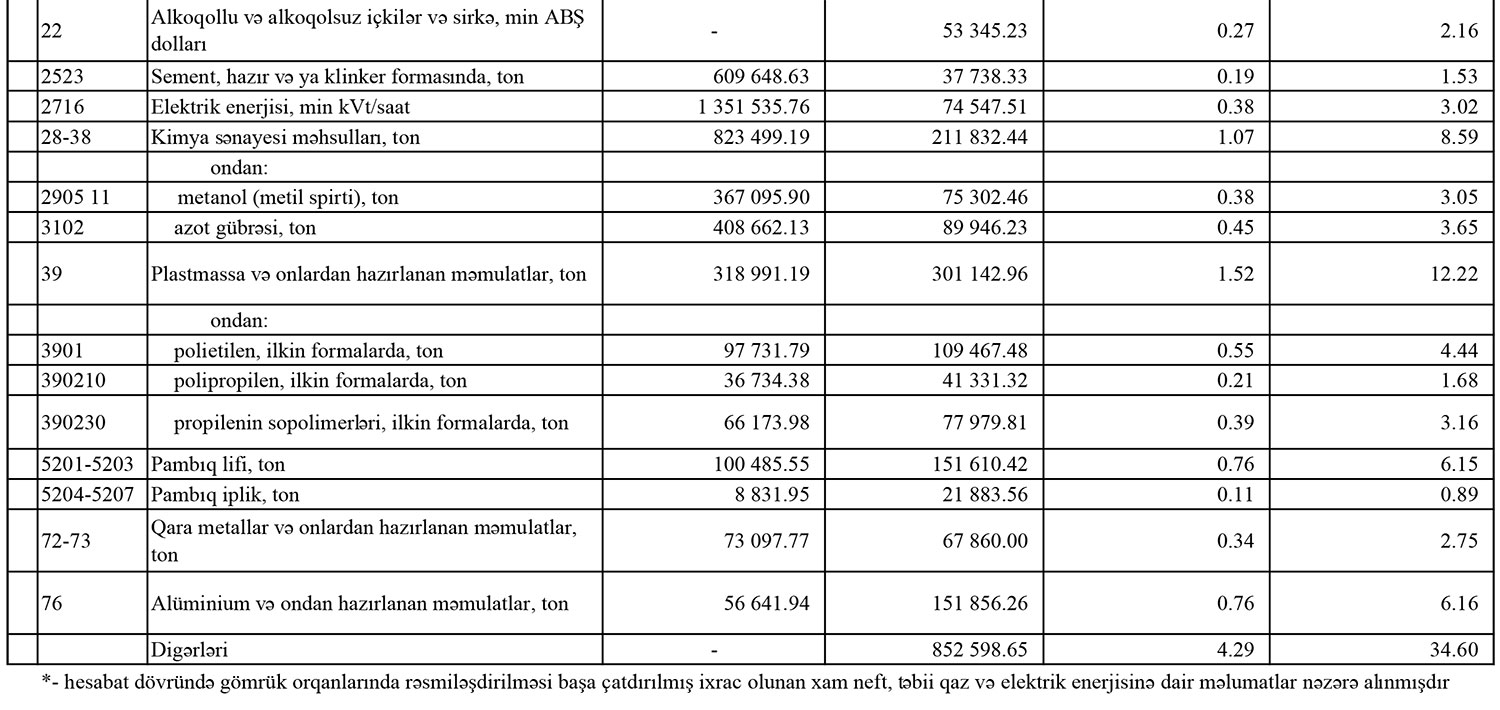 Azərbaycanın ən çox ixrac və idxal etdiyi mallar - YENİ SİYAHI