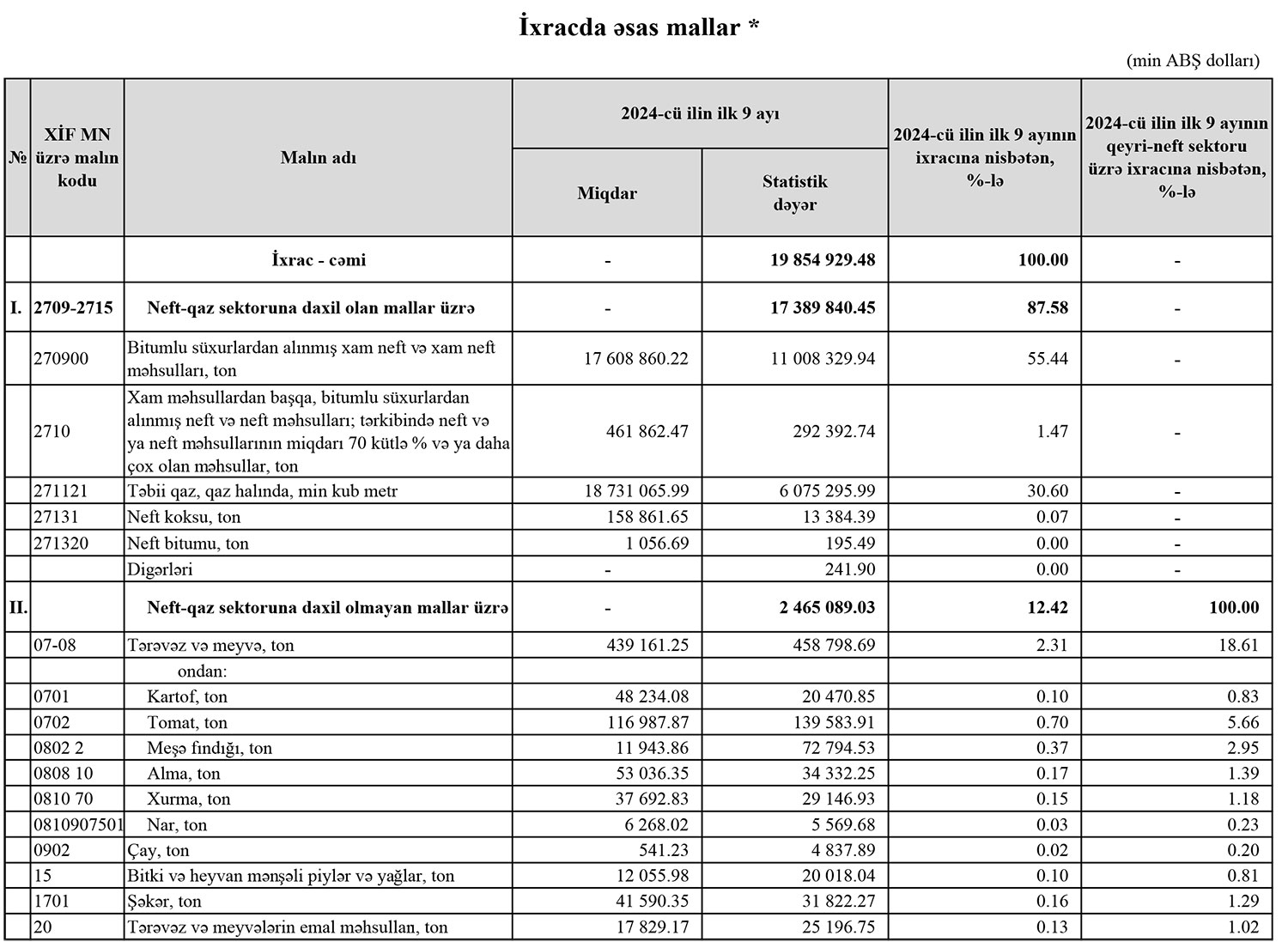 2024-cü ilin yanvar-sentyabr dövründə Azərbaycanın ən çox ixrac və idxal etdiyi mallar.