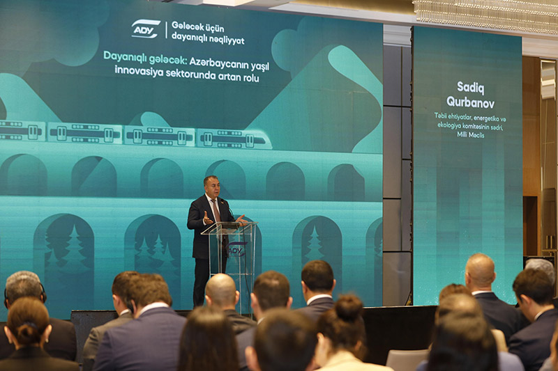 Tədbirdə çıxış edən ADY sədri Rövşən Rüstəmov dayanıqlı nəqliyyatın qurulmasında dəmir yollarının roluna toxunaraq bildirib ki, dəmir yolu dayanıqlığının birinci və ən mühüm aspekti emissiyaların azaldılması və enerji səmərəliliyidir. Dəmir yolu nəqliyyatı qlobal karbon qazı emissiyasının sadəcə 1%-ni təşkil edir və buna görə də digər nəqliyyat növləri ilə müqayisədə daha effektivdir.