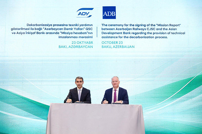 Daha sonra ADY sədri Rövşən Rüstəmov və Asiya İnkişaf Bankının nəqliyyat direktoru Ceyms Lederin iştirakı ilə iki qurum arasında dəmir yollarında dekarbonizasiya sahəsində əməkdaşlığa dair missiya sənədi imzalanıb.