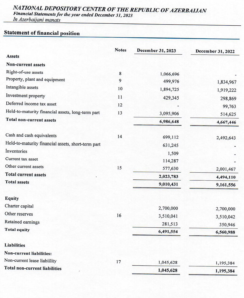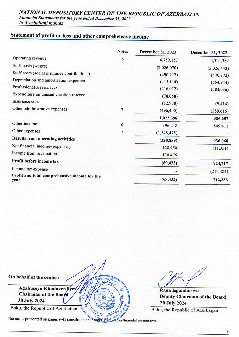 Milli Depozit Mərkəzi 2023-cü ili 69 min 433 manat xalis zərər ilə başa vurub. Halbuki, Mərkəz 2022-ci ili 712 min 33 manat xalis mənfəət ilə bağlamışdı.