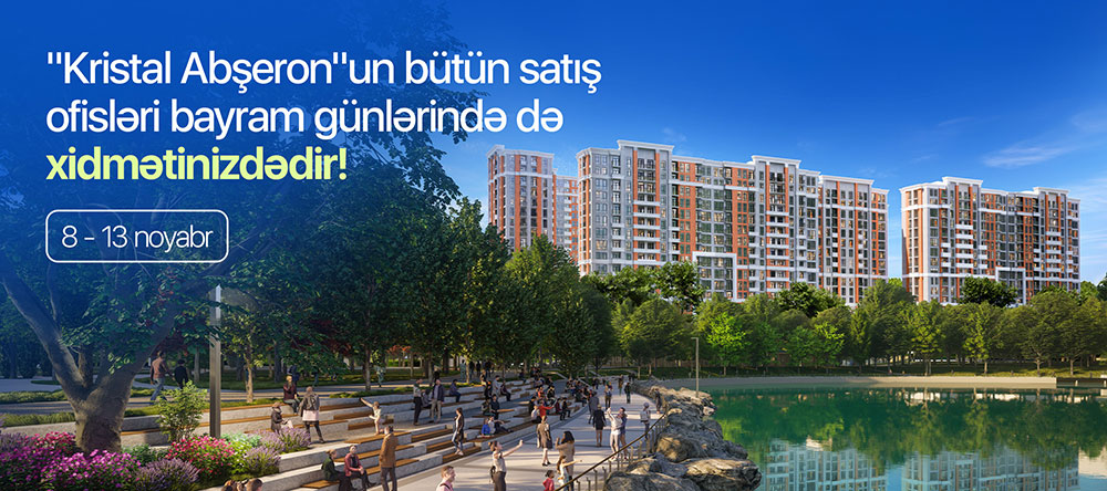 “Kristal Abşeron”un bütün satış ofisləri bayram günlərində də fəaliyyət göstərəcək.(®) Mənzil sahibi olmaq istəyənlərə “Kristal Abşeron”un “Park Yasamal” layihəsindən əla fürsət var!