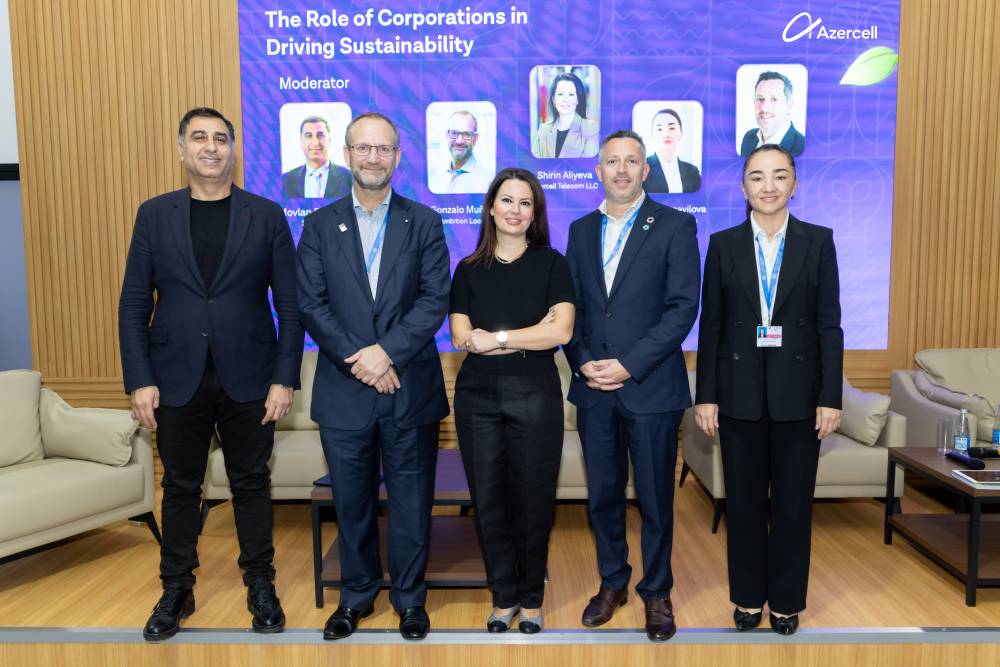 Şirin Əliyeva və Aybəniz İsmayılova isə müzakirələr çərçivəsində iştirakçılar ilə yerli təcrübəni bölüşüblər. Şirin Əliyeva Azercell-in ESG strategiyası, o cümlədən bərpa olunan enerji mənbələrindən istifadəyə və enerji səmərəliliyinin artırılmasına yönəlmiş layihələri barədə məlumat verib. Ş. Əliyeva Azercell-in Qarabağda 35 yaşıl baza stansiyasının fəaliyyət göstərdiyini və onların enerji tələbatının 60%-nin bərpa olunan enerji hesabına qarşılandığını qeyd edib. Həmçinin şirkətin qlobal iqlim təşəbbüslərində, o cümlədən BMT-nin Qlobal Sazişi və GSMA-nın İqlim Fəaliyyəti üzrə İşçi Qrupunda fəal iştirakı da vurğulanıb.