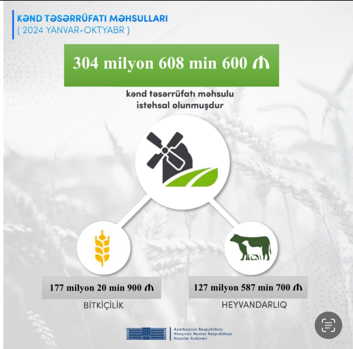 Naxçıvan Muxtar Respublikasında 2024-cü il yanvar-oktyabr ayları ərzində ayrı-ayrı sahələr üzrə makroiqtisadi göstərici aşağıdakı kimi olmuşdur: