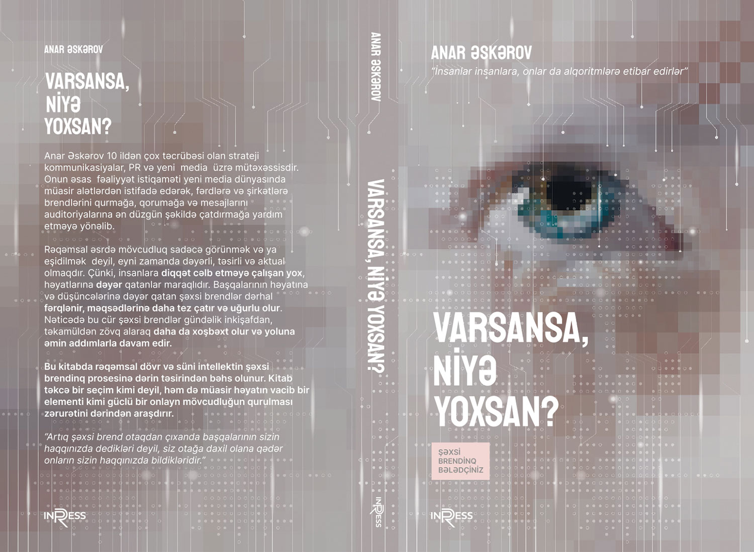 - Müasir dövrdə təkcə real həyatda mövcud olmaq kifayət etmir. Rəqəmsal mühit artıq bizim həyatımızın ayrılmaz hissəsinə çevrilib. Əgər bir insan real həyatda varsa, rəqəmsal dünyada niyə görünməsin? Burada söhbət yalnız sosial mediada var olmaqdan getmir, rəqəmsal mühitdə şəxsi brendin qurulması, idarə olunması və ən əsası, reputasiyanın necə qorunması məsələləri böyük əhəmiyyət daşıyır. Kitabda bu prosesin incəliklərinə toxunmuşam. Kitabın adı da, məhz bu məqamdan ilhamlanıb. Yəni real həyatda varsansa, paralel dünya sayılan rəqəmsal mühitdə niyə olmayasan?!
