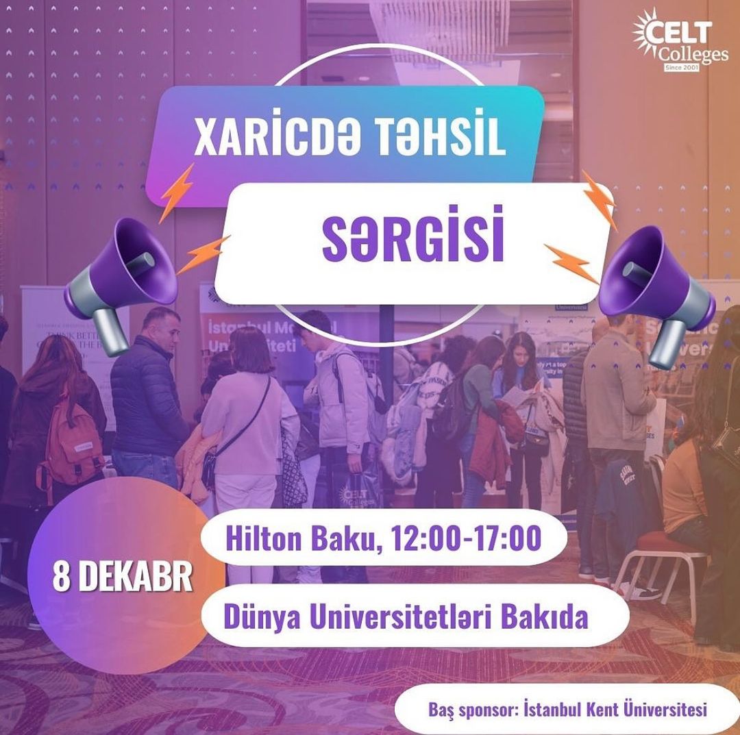 8 Dekabr 2024-cü il tarixində "Hilton Baku" hotelində CELT Xaricdə təhsil sərgisi keçiriləcək.