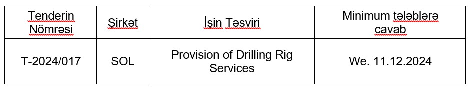 TENDER ELANI(®) "GL Group" və onun afilə şirkəti "Salyan Oil Limited" tərəfindən elan edilən açıq tenderdə iştirak etmək istəyən podratçıların nəzərinə.