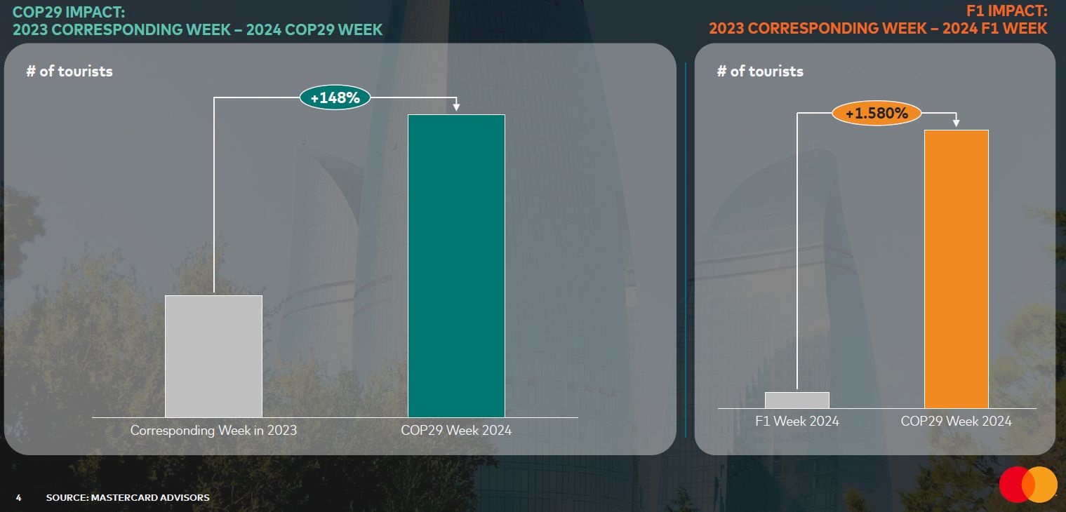 “Mastercard Advisors” biznes konsultasiya xidməti tərəfindən hazırlanan və Mastercard-ın satış nöqtələri üzrə (POS) xərc məlumatlarına əsaslanan hesabatda COP29-un Azərbaycan iqtisadiyyatına təsiri ilə bağlı əsas göstəricilər bu qlobal tədbir sayəsində əldə edilmiş böyük iqtisadi irəliləyişi nümayiş etdirir.