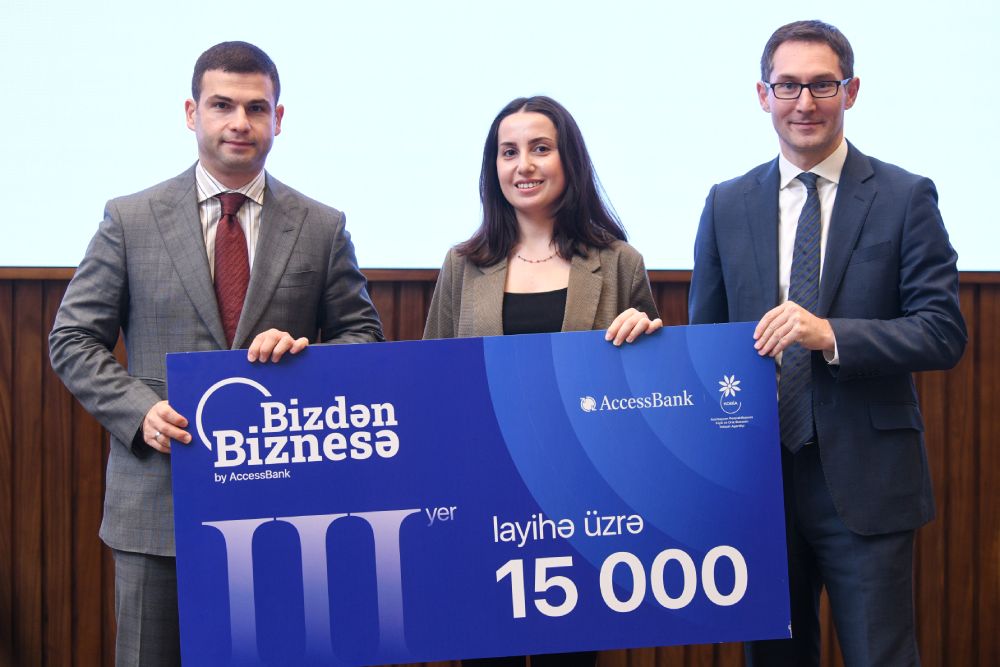 “Bizdən Biznesə” layihəsinin şərtlərinə görə I yerin sahibinə biznes planın həyata keçirilməsi üçün AccessBank tərəfindən 25 000 AZN, II yerin sahibinə 20 000 AZN, III yerin sahibinə isə 15 000 AZN dəyərində mükafat təqdim edilib. Qaliblər mükafatı yalnız nağdsız hesablaşma formasında istifadə edə bilərlər və bir il ərazidə AccessBank vasitəsilə ölkə daxili aparılan bütün bank əməliyyatları komissiya ödənişlərindən azad edilir.