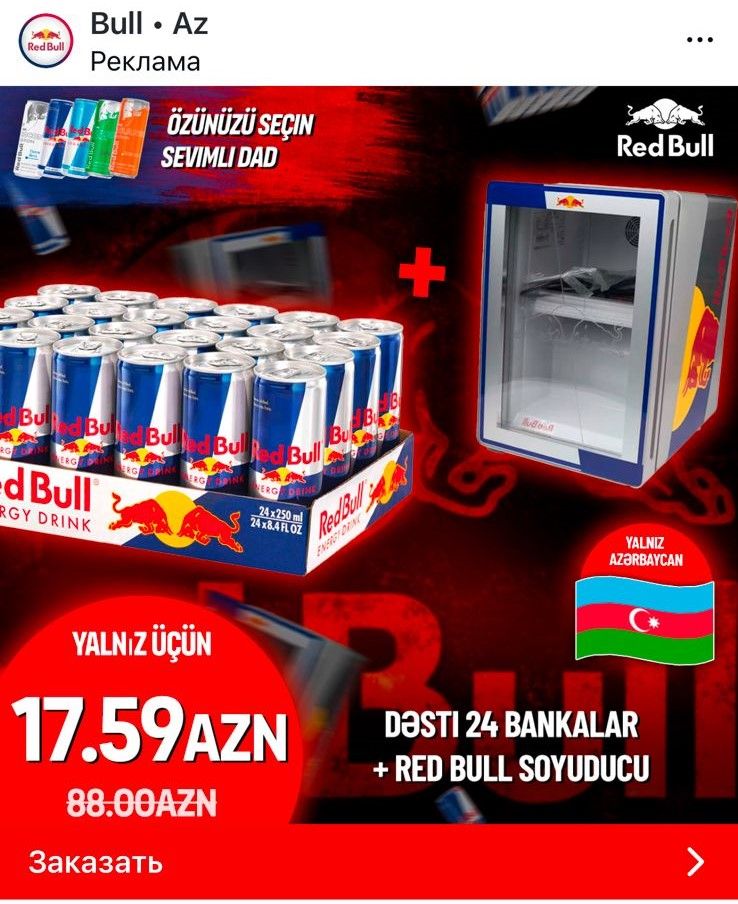 “Bu paylaşımlarda Red Bull adından istifadə edərək endirim kampaniyalarının keçirildiyi göstərilir və əsassız foto və videomateriallar təqdim olunur, bank kartı məlumatları istənilir”.