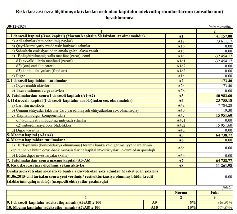 "Bank Melli İran" Bakı filialında aktivlər üzrə yaradılmış ehtiyatdan azad olan məbləğ 2023-cü ildə 3 milyon 247 min manat ikən, 2024-cü ildə 6 milyon 624 min manat təşkil edib (3 milyon 377 min manat və ya 2 dəfə artıb ).